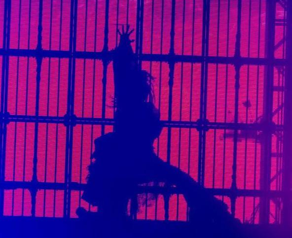 さらに、Adoの特徴的なシルエットがプロジェクションの一部として演出に取り込まれ、彼女の匿名性がさらに際立つステージ構成が工夫されています。