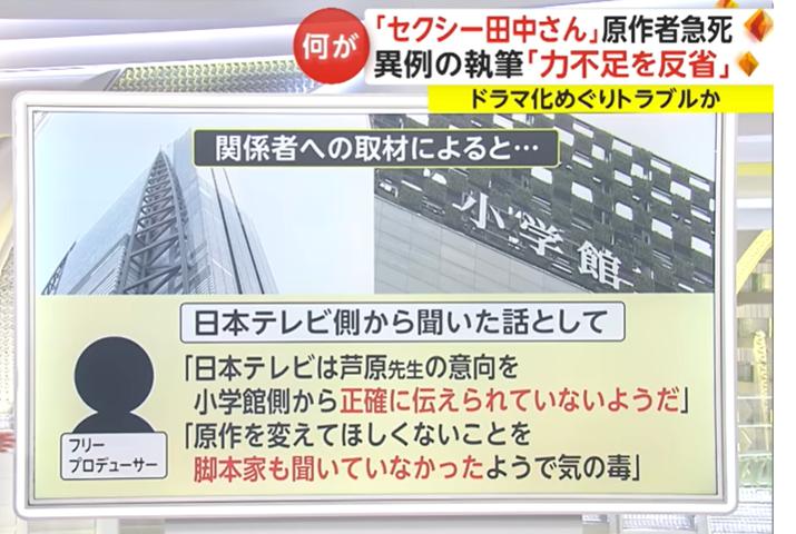 日本テレビは、芦原さんの意向を少学館側から正確に伝えられていないようだ。