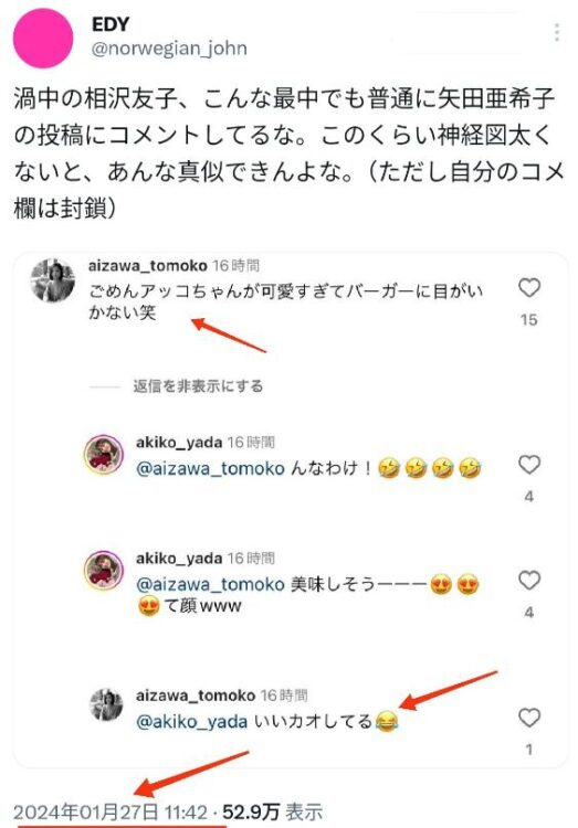 しかし、投稿後の世間の反応であった可能性があります。
