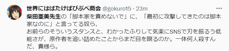 しかし、投稿は予想外に大きな反響を呼び、意図せず制作側や脚本家への誹謗中傷に発展してしまいました。