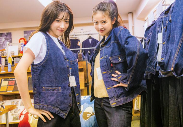 最初のデニム姿の2ショットでは、ポージングや立ち位置の工夫もあってか、