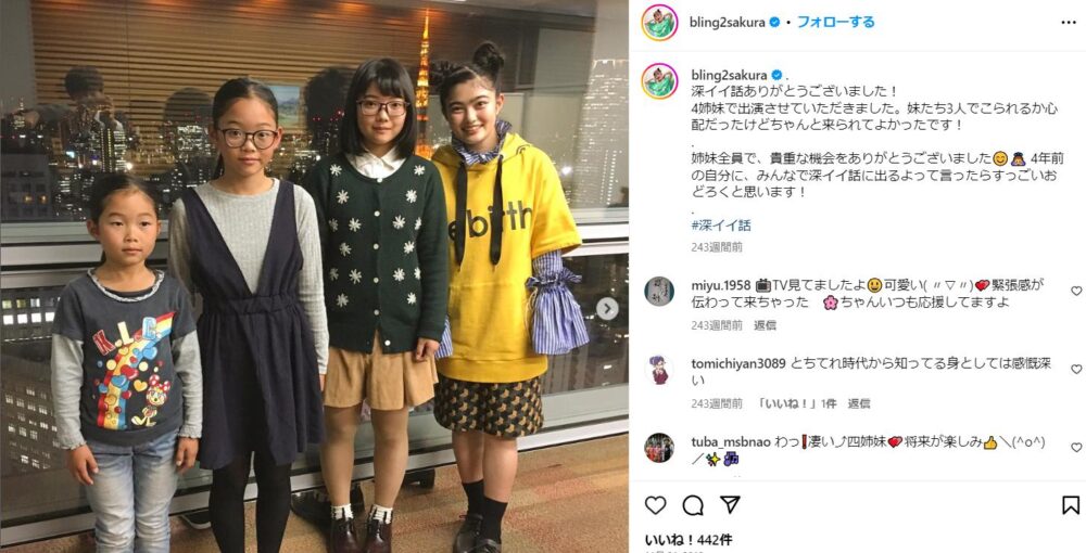 井上咲楽さんは3人の妹がいます。