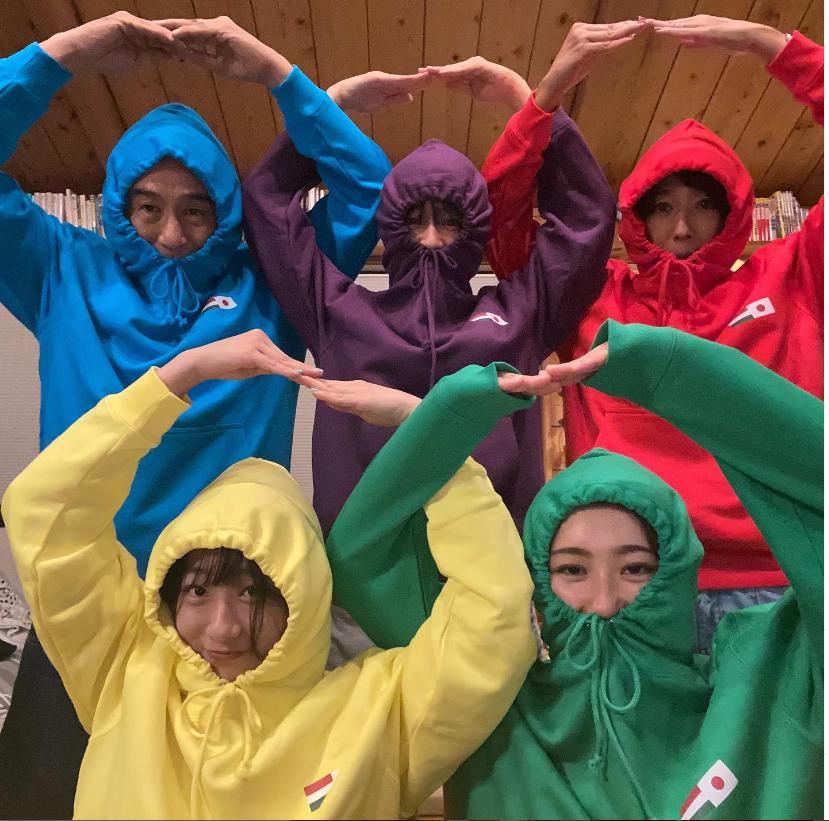 娘の旅立ちを前に友人がゴレンジャーパーカー?を作ってくれました!5色といえば、すぐこんな事したくなる我が家の性、、、、