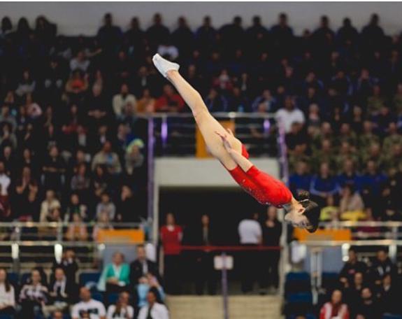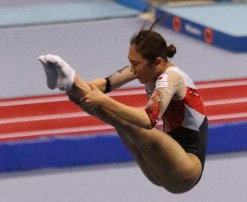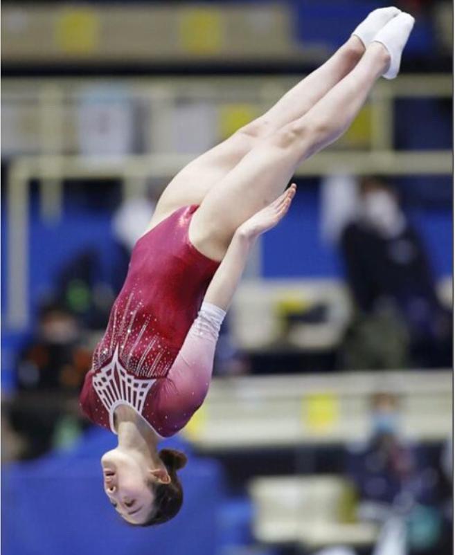 レオタード姿はまさにアート。トランポリンの演技がより一層引き立つ!!