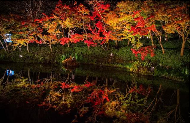 池の周囲から見る水上イルミネーションは、特に夜になると美しい光景が広がります。