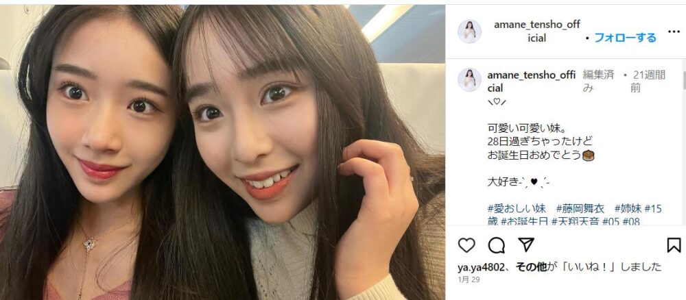 天翔天音さんの姉は天翔愛・兄は藤岡真威人・妹は藤岡舞衣の芸能一家です。